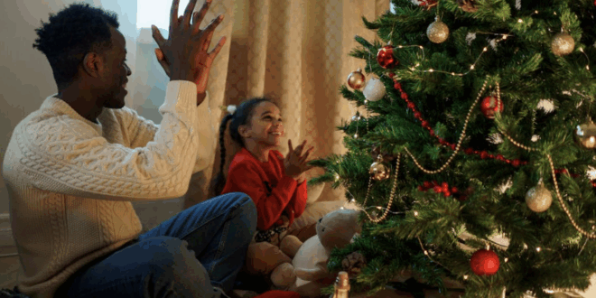 • Natural light: Placing the tree near a source of daylight helps showcase ornaments during the day.